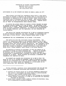 Código de Referencia / Reference code FMP-1977-01 Organización feminista / Feminist Organization Federación de Mujeres Puertorriqueñas Título / Title Federación de Mujeres Puertorriqueñas. Actividades de la FMP durante los meses de enero a abril de 1977 Creado por / Creator Federación de Mujeres Puertorriqueñas Fecha de Publicación / Publication Date 1977 Tipo de Recurso / Resource Type Texto Localizacion / Location Colección Documentos del Feminismo Rivera Lassén-Crespo Kebler Colaboradoras / Contributors N/A Descripción / Description Informe de la FMP de las actividades que se llevarán a cabo durante los meses de enero a abril de 1977. Quién lo Publica / Publisher N/A Lenguaje / Language Español Notas / Notes N/A Temas / Subject N/A