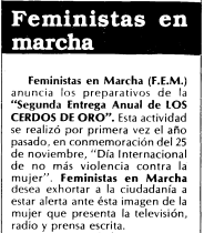 Temas / Subject Cerdos de Oro, Feministas en Marcha, mujer medios de comunicación, Día Internacional No Más Violencia Contra la Mujer, Puerto Rico, objeto sexual