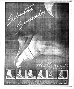 Código de Referencia / Reference code CDO-1986-SS Organización feminista / Feminist Organization Título / Title Siluetas Sensuales Creado por / Creator di Morini Fecha de Publicación / Publication Date 1986/02/18 Tipo de Recurso / Resource Type Artículo en periódico Localizacion / Location Colección Documentos del Feminismo Rivera Lassén- Crespo Kebler Colaboradoras / Contributors Descripción / Description Quién lo Publica / Publisher El Nuevo Día Lenguaje / Language Español Notas / Notes Temas / Subject Anuncio, Di Morini, Calzado
