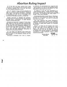 Código de Referencia / Reference code MIA-1973-ARI Organización feminista / Feminist Organization N/A Título / Title Abortion Ruling Impact Creado por / Creator Brach, Pireaux Fecha de Publicación / Publication Date 1973/06/19 Tipo de Recurso / Resource Type Artículo de periódico Localizacion / Location Colección Documentos del Feminismo Rivera Lassén-Crespo Kebler Colaboradoras / Contributors N/A Descripción / Description N/A Quién lo Publica / Publisher The San Juan Star Lenguaje / Language Inglés Notas / Notes N/A Temas / Subject Derecho al aborto, Mujer y su cuerpo, Leyes en torno al aborto
