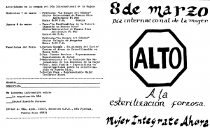 Código de Referencia / Reference code MIA-1979-EF Organización feminista / Feminist Organization Mujer Intégrate Ahora Título / Title Alto a la esterilización forzosa Creado por / Creator Mujer Intégrate Ahora Fecha de Publicación / Publication Date 3/8/1979 Tipo de Recurso / Resource Type Folleto Localizacion / Location Colección Documentos del Feminismo Rivera Lassén-Crespo Kebler Colaboradoras / Contributors N/A Descripción / Description N/A Quién lo Publica / Publisher Mujer Intégrate Ahora Lenguaje / Language Español Notas / Notes N/A Temas / Subject Esterilización, Día Internacional de la Mujer, Mujer Intégrate Ahora