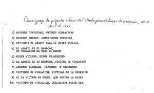 Código de Referencia / Reference code MIA-1977-CPA Organización feminista / Feminist Organization Mujer Intégrate Ahora Título / Title Consignas de piquete a favor del aborto para víctimas de violación Creado por / Creator Mujer Intégrate Ahora Fecha de Publicación / Publication Date 1977/04/20 Tipo de Recurso / Resource Type Documento Localizacion / Location Colección Documentos del Feminismo Rivera Lassén-Crespo Kebler Colaboradoras / Contributors N/A Descripción / Description N/A Quién lo Publica / Publisher Mujer Intégrate Ahora Lenguaje / Language Español Notas / Notes N/A Temas / Subject Mujer Intégrate Ahora, Aborto, Puerto Rico