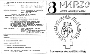 Código de Referencia / Reference code MIA-1978-V Organización feminista / Feminist Organization Mujer Intégrate Ahora Título / Title La violación no es nuestro destino Creado por / Creator Mujer Intégrate Ahora Fecha de Publicación / Publication Date 1978/03/08 Tipo de Recurso / Resource Type Folleto Localizacion / Location Colección Documentos del Feminismo Rivera Lassén-Crespo Kebler Colaboradoras / Contributors N/A Descripción / Description N/A Quién lo Publica / Publisher Mujer Intégrate Ahora Lenguaje / Language Español Notas / Notes N/A Temas / Subject Mujer Intégrate Ahora, 8 de marzo, Violación, Puerto Rico, Derechos de la mujer