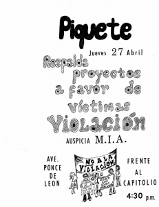 Código de Referencia / Reference code MIA-1978-PVV Organización feminista / Feminist Organization Mujer Intégrate Ahora Título / Title Piquete pro victimas de violación, (anuncio) Creado por / Creator Mujer Intégrate Ahora Fecha de Publicación / Publication Date 1978/04/27 Tipo de Recurso / Resource Type Documento Localizacion / Location Colección Documentos del Feminismo Rivera Lassén-Crespo Kebler Colaboradoras / Contributors N/A Descripción / Description N/A Quién lo Publica / Publisher Mujer Intégrate Ahora Lenguaje / Language Español Notas / Notes N/A Temas / Subject Mujer Intégrate Ahora, Puerto Rico, Piquete, Víctimas de violación